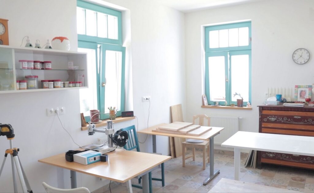 Důležitou součástí projektu bylo také vytvoření prostoru pro osobní záliby majitelů. Manželka zde našla ideální zázemí pro keramickou dílnu, kde vznikají originální výrobky určené do exteriéru i interiéru domu. Manžel, který je technicky zručný a rád pracuje rukama, využívá dílnu k realizaci vlastních projektů a úprav v domácnosti.