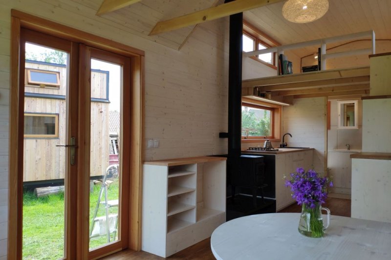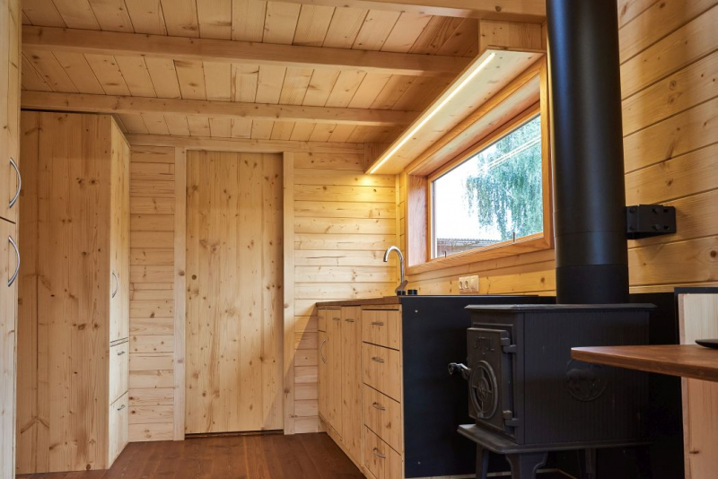 Vytápění se řeší výhradně krbovými kamny na kusové dřevo a jak říká, neměnil by. „Na domku máme prosklená kamna na dřevo a v zimě je to nádherné. Připadáme si tu jako na chalupě. A zima nám zde rozhodně není. Díky kvalitní izolaci má dům dobrou akumulaci tepla a rozhodně zde netrpíme, jak si mnozí myslí. Izolaci jsem použil na naše poměry možná nezvyklou, ale o to více jsem s ní spokojený. Jedná se o čistě přírodní lněnou izolaci, která má dlouhou životnost a dobré vlastnosti. Problém nastává spíše v létě, kdy se domek může přehřívat a je dobré ho umístit pod strom, případně zastínit sluneční plachtou.“