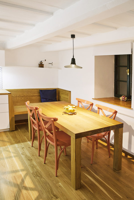 „Jezdívali jsme do skanzenu, abychom se inspirovali, jak se stavěly a zařizovaly chalupy dříve, a pak jsme vždycky hodně dlouho přemýšleli, jak to či ono provést tak, aby byly všechny prvky dokonale funkční a z moderních materiálů,“ popisuje celý proces Jirka.