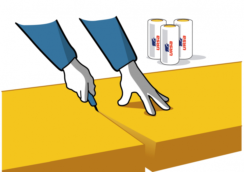 - odřízneme naměřenou část, řez provádíme podél přítlačné lišty speciálním nožem URSA určeným k řezání izolace