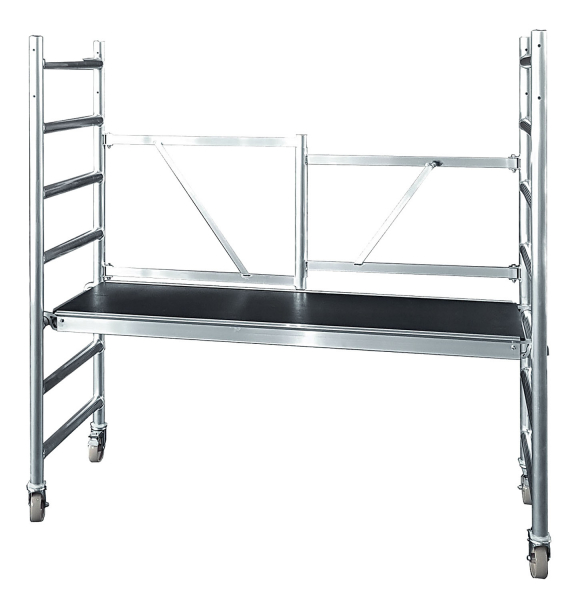 Malé, lehké a skládací interiérové lešení se uplatní pro všechny práce uvnitř domu, kde je nutné pracovat z pevné podlahy. Lešení má zajistitelná kolečka, takže se dá snadno přesouvat. Výhodou je jednoduchá montáž kompaktního rámu a podlážky nebo možnost nástavby rámu pro práci ve větších výškách. Toto lešení se dá vypůjčit v půjčovně, základní sestava stojí 180 Kč/den bez DPH.