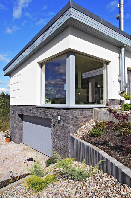 Název projektu: Rekonstrukce RD v bývalé dělnické kolonii, Kamenná čtvrť v Brně Architekti: KAMKAB!NET – Ing. arch. Radim Horák, Ing. arch. Hana Horáková Výrobce hliníkových okenních a dveřních systémů Schüco: DAFE – PLAST Jihlava, s.r.o. Vstupní dveře: Schüco ADS 75.SI, celoprosklené Okenní systémy: Schüco AWS 75.SI okna s trojsklem standardních rozměrů, největší fixní prvky š 2500 x v 2350 mm Vysoce tepelně izolovaný posuvný HS portál Schüco ASS 70.HI (š 4000 x v 2300 mm) Střešní okna: VELUX INTEGRA dálkově ovládaná s venkovním i vnitřním stíněním, světlík VELUX