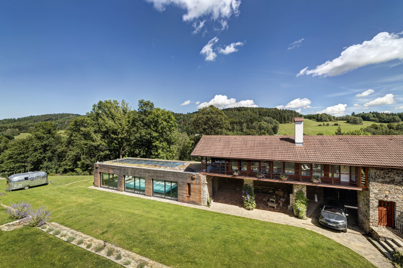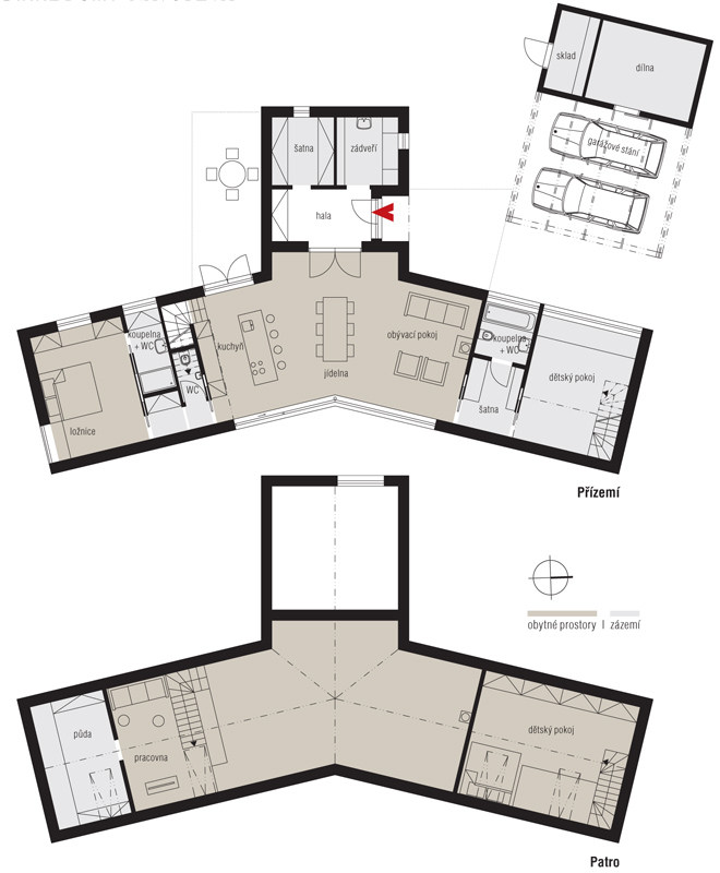 Také architekti byli pozemkem nadšeni. Synergií atypického tvaru a orientace parcely, požadavků na výhledy a soukromí vznikl koncept domu ve tvaru Y se třemi rameny, směřujícími k východu, jihu a západu. Rozdělují parcelu na část vstupní s parkovacím stáním, část výhledovou a soukromou, kde je „schována“ terasa.