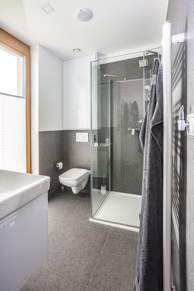 S mozaikami lze pracovat klasickým způsobem nebo je rozřezat a jejich následným pravidelným natáčením vytvořit dekorativní plochy. Získáte tak vlastní detaily na míru, které zvýrazní exkluzivitu koupelny. Ke kombinování doporučujeme dlaždici Quarzit v černé barvě ve formátu 60 x 60 cm. Dlaždice jsou rektifikované na stejný modulový rozměr jako obkládačky Vein, což umožňuje dodržet stejnou velikost spáry u všech obkládaných ploch.