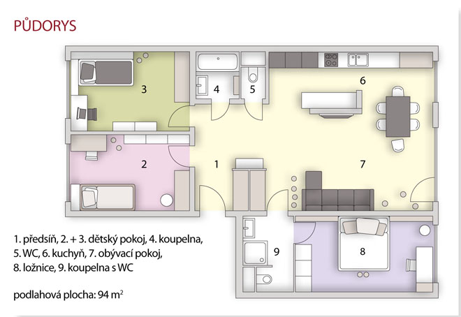 Díky připojení dvou místností přes nosnou zeď se celá dispozice otevřela a bylo možné vybudovat velkou vstupní chodbu, kuchyň propojenou s obývacím pokojem, ložnici rodičů s vlastní koupelnou, dva dětské pokojíky a ještě jednu dětskou koupelnu. Vznikla i z chodby přístupná technická místnost s pračkou, sušičkou a veškerým zázemím pro praní, žehlení a skladování prádla.