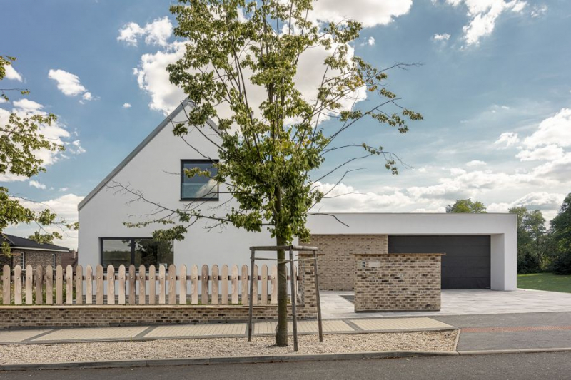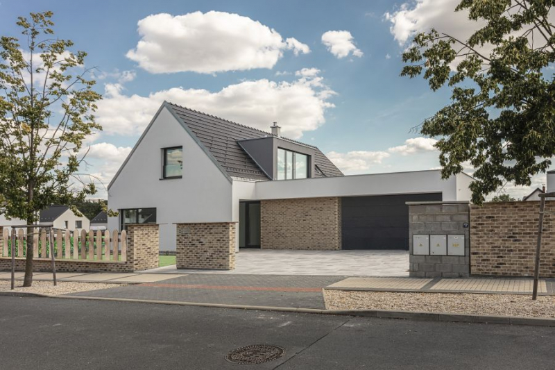 První vzorový e4 dům z programu Wienerberger e4 dům byl pro rodinu investora Ing. Karla Vlčka realizován stavební firmou Harmony SZ, a.s., podle návrhu Ing. arch. Bohumila Brůži, který zvítězil v architektonické soutěži společnosti Wienerberger, jejímž hlavním tématem byla realizace domů s téměř nulovou spotřebou energie (nZEB). Je to dům s celokeramickou obálkou z cihel Porotherm, pálené střešní krytiny Tondach a lícového zdiva Terca. Konstrukčně je využito systému jednovrstvého obvodového zdiva.