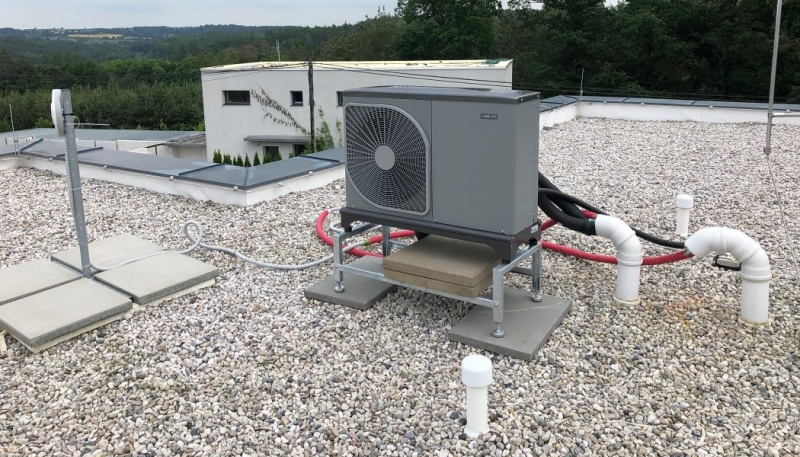 Toto optimální řešení pro vytápění a chlazení interiéru navrhla společnost Kačírek – Topení, která následně ručila za instalaci celého systému – tedy za umístění tepelného čerpadla a jeho komponent do technické místnosti, připojení všech rozvodů, napuštění systému a zapojení elektroinstalace.