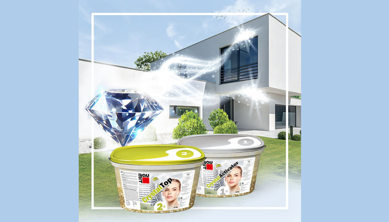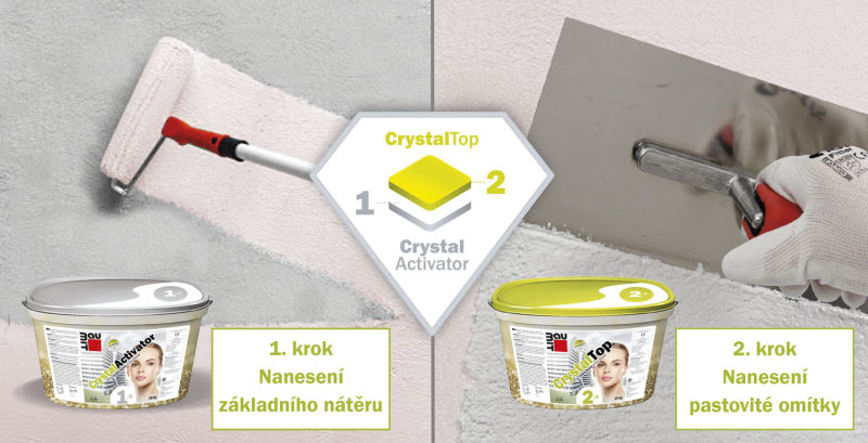 Již samotný výraz „Set“ v názvu této technologie, kterou začátkem roku 2025 nově uvedla na trh společnost Baumit, prozrazuje, že se v tomto inovativním omítkovém systému jedná vlastně o dva separátní komponenty. Tím prvním je základní nátěr Baumit CrystalActivator, který je aktivujícím podkladem pro druhou důležitou část – minerální omítku Baumit CrystalTop (popř. její jemnější verzi Baumit CrystalTop Fine). Výhody minerálních omítek Baumit jsou obecně známé, ať už se jedná o vysokou míru paropropustnosti, protiplísňové a antibakteriální vlastnosti, ekologičnost, či odolnost vůči UV záření. Avšak technologické hranice těchto omítek se zmíněnou novinkou Baumit CrystalTop opět posouvají o významný krok vpřed. Její klíčovou výhodou a jedinečností je skutečnost, že je dodávána ve formě pastovité omítky balené v praktickém kbelíku.