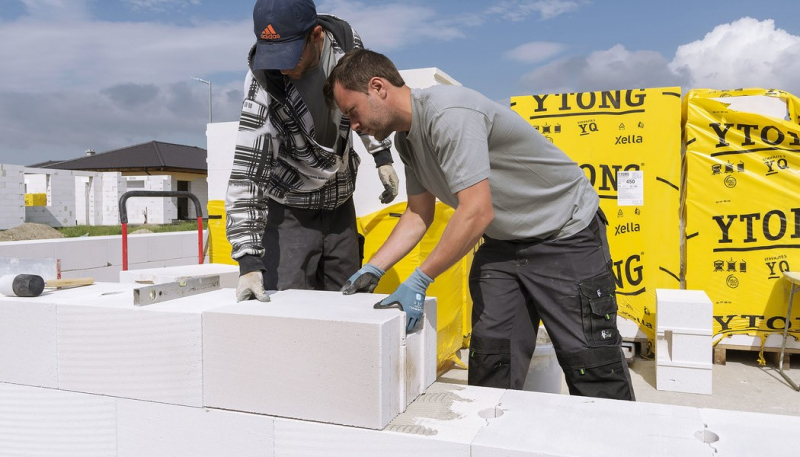 Vynikající tepelné vlastnosti (plus přesnost, snadnou opracovatelnost atd.) mají i stavební komponenty z autoklávovaného pórobetonu, známé jako bílé tvárnice Ytong. Stavební prvky jsou velmi lehké a snadno se s nimi manipuluje. Z pórobetonu lze vytvořit prakticky kompletní hrubou stavbu domu (doslova od základů po střechu), což umožňuje sladěnost všech dílčích prvků do jednoho uceleného systému.