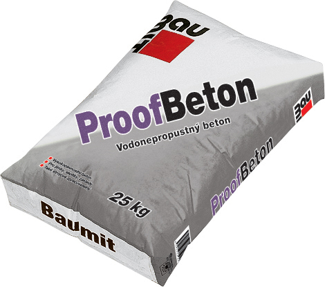 Mezi speciální suché betonové směsi patří mimo jiné Baumit ProofBeton se zrnitostí 4 mm, který je v této skupině produktů vlajkovou lodí. Díky své vodonepropustnosti nachází uplatnění především v konstrukcích vodohospodářských staveb, kanalizací, opěrných stěn nebo základů. Jedná se o materiál s vysokou konečnou pevností a vedle odolnosti proti mrazu a posypovým solím je též certifikovaný pro styk s pitnou vodou. Jako jediný z kategorie speciálních suchých betonových směsí je zpracovatelný ručně i strojně se zapůjčením mobilního sila.