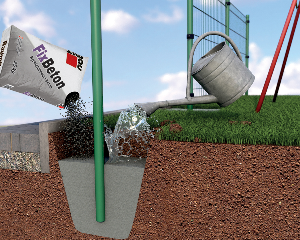 Především kutilové a zahrádkáři ocení vlastnosti suché betonové směsi Baumit FixBeton. Jedná se totiž o rychletuhnoucí beton pro drobné stavební práce, který je vhodný například pro betonování sloupků zahradních plotů, zábradlí či dopravního značení. Při práci s touto suchou betonovou směsí je však potřeba dodržet pracovní postup, zejména z pohledu její časové zpracovatelnosti. Ta trvá přibližně 10 minut a směs začíná tuhnout již po 3 minutách.