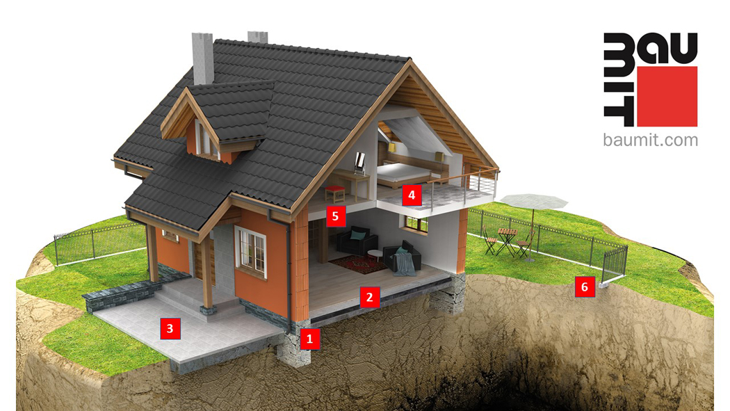 Využití suchých betonových směsí Baumit 1. Baumit ProofBeton – vodonepropustný beton 2. Baumit Beton B 20/30 – tradiční betonové směsi 3. Baumit DrainBeton – drenážní beton 4. Baumit FlexBeton, Baumit FlexBeton Speed – spádové potěry 5. Baumit FillBeton – zálivkový beton 6. Baumit FixBeton – rychlý kotevní sloupkobeton