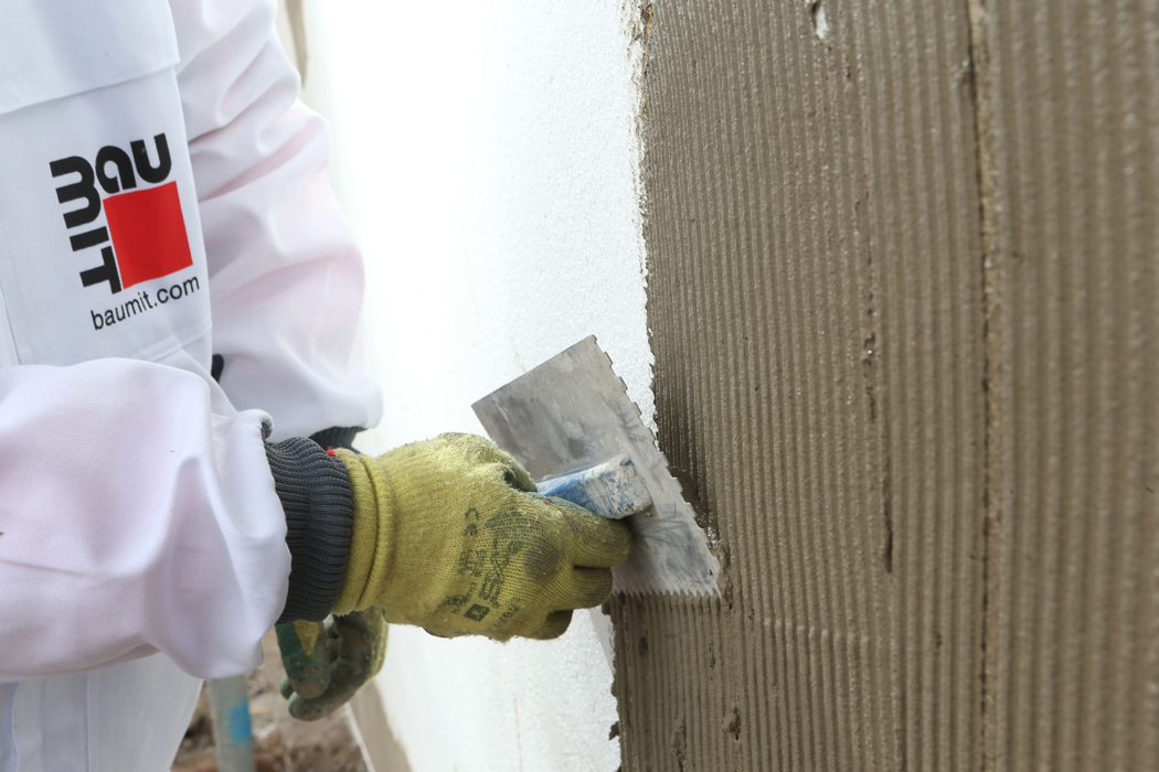 Právě tato specifická odolnost systému zateplení je předepsanou normou ČSN 73 0810 často vyžadována především u bytové výstavby, a to u vícepodlažních nebo výškových budov. Zásadní podmínkou je však ve většině případů použití minerální vaty s kolmým vláknem (TR80) s pevností v tahu kolmo k rovině desky 80 kPa. Výjimečně lze použít také minerální vatu s podélným vláknem (TR15), jejíž pevnost v tahu je 15 kPa. Upřednostníme-li však použití minerální vaty před klasickými zateplovacími polystyrenovými deskami (EPS-F), musíme počítat s vyššími výdaji nejen za izolant jako takový, ale rovněž za jeho vyšší spotřebu (větší tloušťka vrstvy izolantu vzhledem k vyšší hodnotě součinitele tepelné vodivosti λ [W/m.K]). Minerální vata s kolmým vláknem pro systém ETICS Baumit Ceramic se rozměrově dodává většinou v tzv. lamelách, příkladně o velikosti 1200 x 200 mm.