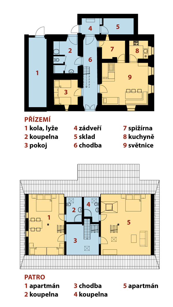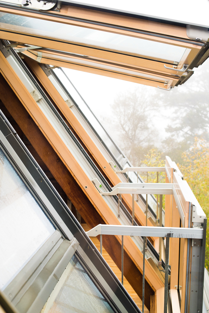 Při rekonstrukci domu byla využita recyklovaná prkna, ze kterých byla v přízemí vytvořena dřevěná terasa a také balkon, na kterém se nyní nachází sauna. Interiér byl uzpůsoben pro bydlení. Prostornou místnost ve spodní části budovy vyplnila otevřená kuchyně v podobě baru a dobře prosvětlená jídelna. Barová deska byla vyrobena ze starých akátových prken. Rovněž strop nad vchodem je z recyklovaného dřeva. K dokončení dřevěné fasády domu byla použita starodávná japonská metoda opalování dřeva, která zaručuje odolnost fasády vůči škůdcům a zvyšuje její životnost.