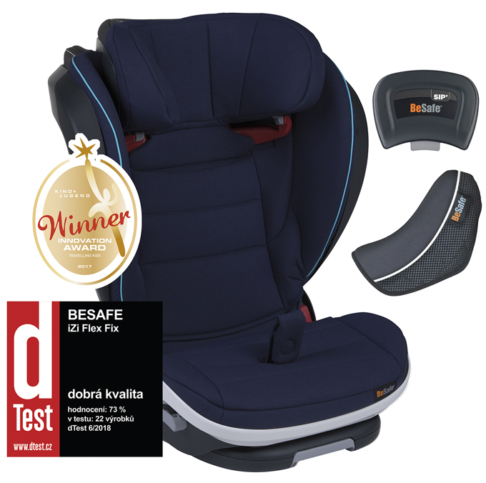 Autosedačka BeSafe iZi Flex FIX i-Size s uchycením po směru jízdy je schválená dle nařízení i-Size fáze 2 a je nastavitelná pro výšky od 100 do 150 cm (tedy přibližně od 4 do 12 let). Model iZi Flex FIX i-Size v sobě spojuje špičkové bezpečnostní prvky, maximální pohodlí a flexibilitu – instalace do vozidla je nejen jednoduchá, ale umožňuje vytvoření prostoru až pro tři vedle sebe sedící osoby. Maximální bezpečnost dětí v sedačce BeSafe iZi Flex FIX i-Size zajišťuje přídavná boční ochrana SIP+, která se nachází na vnější konstrukci sedačky a pohlcuje energii bočního nárazu. Ačkoli autosedačka vyhovuje požadavkům nařízení UN R129 i bez této boční ochrany, výsledky zkoušek i zkušenosti jednoznačně prokazují, že boční ochrana SIP+ ještě více zvyšuje bezpečnost dětí. Současně tato ochrana výrazně snižuje zatížení trupu dítěte v případě bočního nárazu. Proto by sedačka měla být vždy instalována tak, aby ochrana SIP+ byla u dveří vozidla. I potah, který je u limitované edice BeSafe Blue Legacy vyroben z recyklovaných plastových lahví, přispívá k absorbování otřesů. Výšku autosedačky lze snadno správně nastavit, a to i s dítětem usazeným v autosedačce. Díky tomu, že opěrka zad není závislá na sklonu sedačky, je možné autosedačku přizpůsobit sedadlům v různých automobilech.