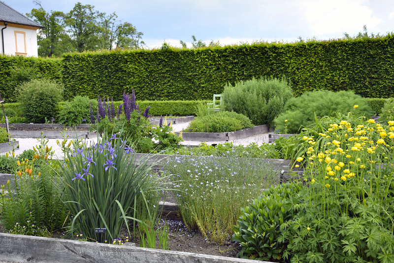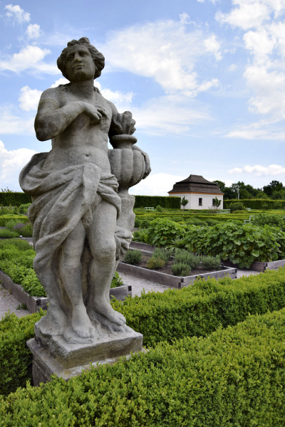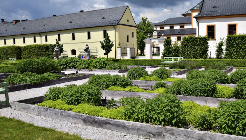Počet záhonů je opravdu obdivuhodný a jejich prohlížení zabere několik hodin. Celý prostor této formální zahrady, která vznikla v roce 1711, je rozdělen do 16 čtverců, z nichž čtyři jsou zatravněné a 12 slouží jako inspirativní výsadby bylinek, rostlin jedovatých i druhů určených k řezu. Více se tu dozvíte třeba i o indiánských bylinách, a jak už to tak se vším, co bylo spojeno s hrabětem Šporkem, je, i v této zahradě hledejte symboliku. Například u výsadeb poblíž hřbitova, kde najdete právě již zmiňované jedovaté rostliny, které upomínají na pomíjivost života.