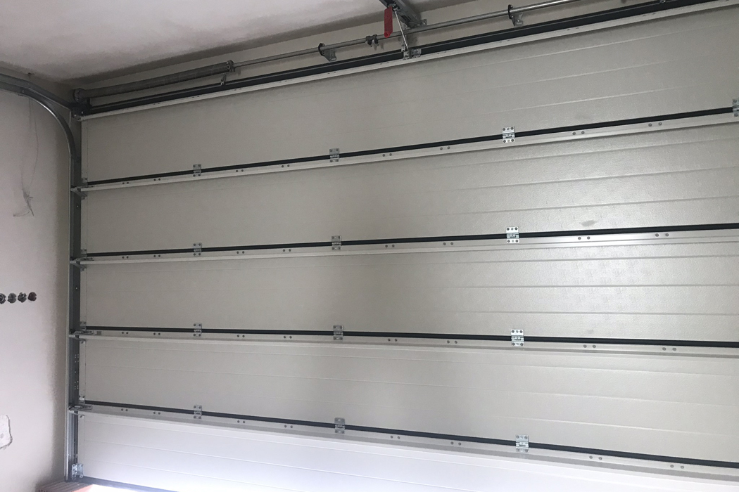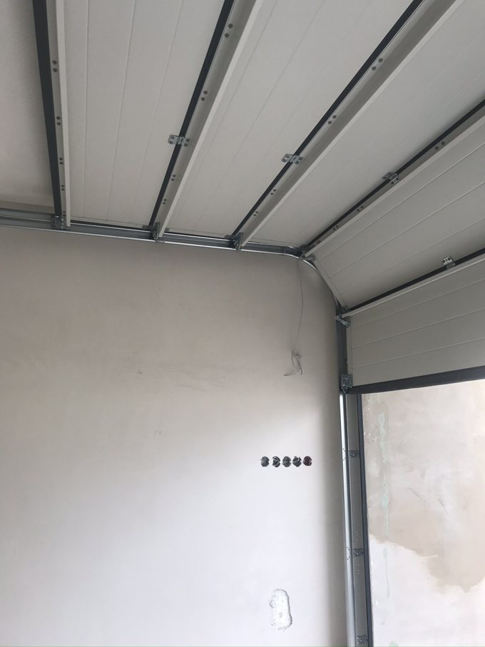 V tomto týdnu probíhala montáž garážových vrat výrobce Hörmann s motorovým pohonem na dálkové ovládání, které dodávala společnost Vekra. Před montáží vrat je zapotřebí, aby byla hotová povrchová úprava omítek na vnitřních stěnách a také na stropě, v našem případě jemná vápenná stěrka Baumit KlimaFino. Podlahu v garáži je možné zhotovit až po montáži, ale je nutné vyznačit montážníkům přesnou úroveň budoucí podlahy.