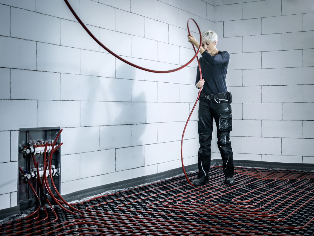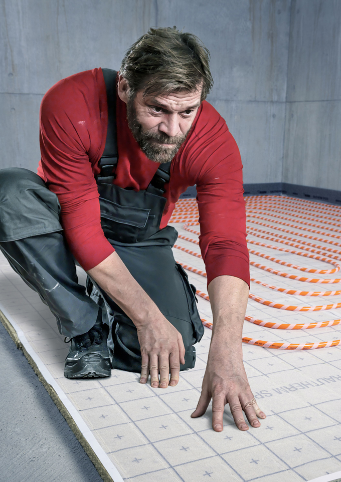 V případě mokré cesty, která je ovšem mnohem častější, nabízí REHAU hned více možností. Jednou z nich je systémová deska Varionova s kročejovou a tepelnou izolací (případně bez izolace) pro „červenou trubku“ bezpečně zafixovanou (max. průměr je 17 mm) v desce, nebo vodicí lišta Raufix (vhodná pro větší plochy nedělené příčkami i vyšší topné výkony s trubkou až do 20 mm), pod kterou se instaluje celoplošná krycí fólie (izoluje podklad proti záměsové vodě), či systém Tracker (polystyrénová deska s PE folií) vhodná třeba pro menší a členité místnosti. Mnozí řemeslníci preferují systémové desky proto, že umístění trubky je v tomto případě přesně dané a nemůže dojít k jejich nechtěnému posunu při montáži.