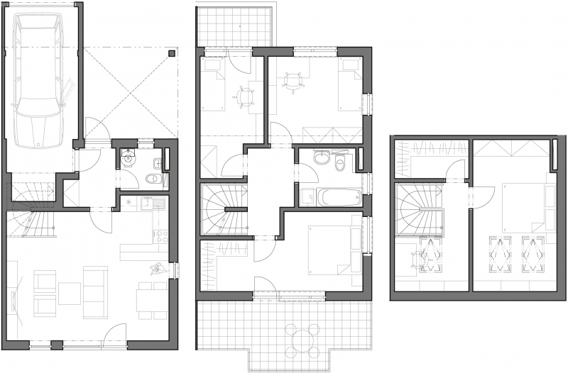 Náš ateliér navrhl již přes 10 000 bytů a mnoho řadových rodinných domů, dvojdomů i samostatných rodinných domů. Dům má oproti bytu většinou tu výhodu, že díky více podlažím přirozeně oddělíte společenskou a klidovou zónu. Máte zde i možnost navrhnout větší zázemí – komory, šatny, spíže či místnost pro domácí práce a tyto místnosti mohou mít přirozené větrání a osvětlení okny. K rodinnému domu často patří větší garáž, i když moje zkušenost je taková, že po čase auto většinou stojí venku a garáž slouží jako sklad nebo herna pro děti či tatínka.