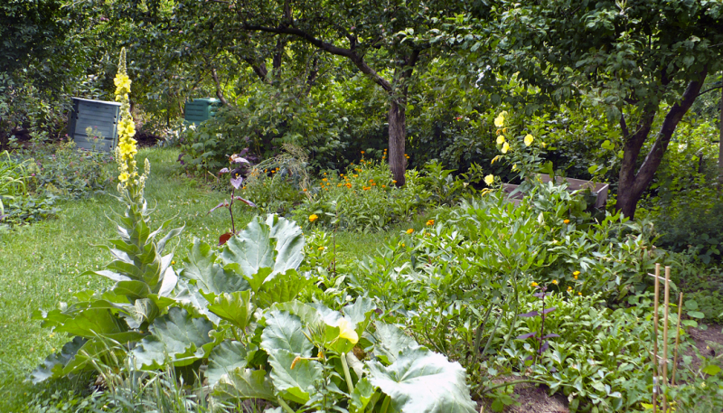 Dobrým vodítkem je vyjít si na procházku do přírody a prohlédnout si místa, která se nám líbí, třeba okraj lesa, který přechází v květnatou louku, mýtinu s jezírkem a podobně. Na své zahrádce můžeme vytvořit něco podobného, vysázíme různě vysoké rostliny v několika patrech – od nejvyšších stromů až po nízké bylinky, a hlavně nikde nenecháme obnaženou půdu. Ta je totiž naprosto nepřirozená, odpařuje se z ní spousta vody, sluneční paprsky v ní ničí mikrobiální život, a znamená to také neustálý boj s plevelem. Z tohoto požadavku vyplývá, že budeme dávat přednost dřevinám a trvalkám před jednoletými rostlinami. Dále je v přírodních zahradách důležité dávat přednost nenáročným druhům rostlin, jaké v našich podmínkách odjakživa prosperovaly, namísto různých vysoce vyšlechtěných odrůd, vyžadujících velké opečovávání. Vysazujeme staré a místní odrůdy dřevin, tradiční „prababičkovské“ květiny, na pozemku necháme růst i plané druhy, které se nám tam samy usadí a jsou užitečné nebo dekorativní – ty nepokládáme za plevely, ale za vítané hosty nebo, jak se říká, „dobrovolnické rostliny“. Příkladem je mladý ptačinec, výborný do salátu, nebo jedlé a léčivé rostliny jako brutnák, pampeliška, česnáček, kostival nebo divizna, nebo květiny, které nám na pár týdnů obohatí zahrádku barvami, jako vlaštovičník nebo kakost.