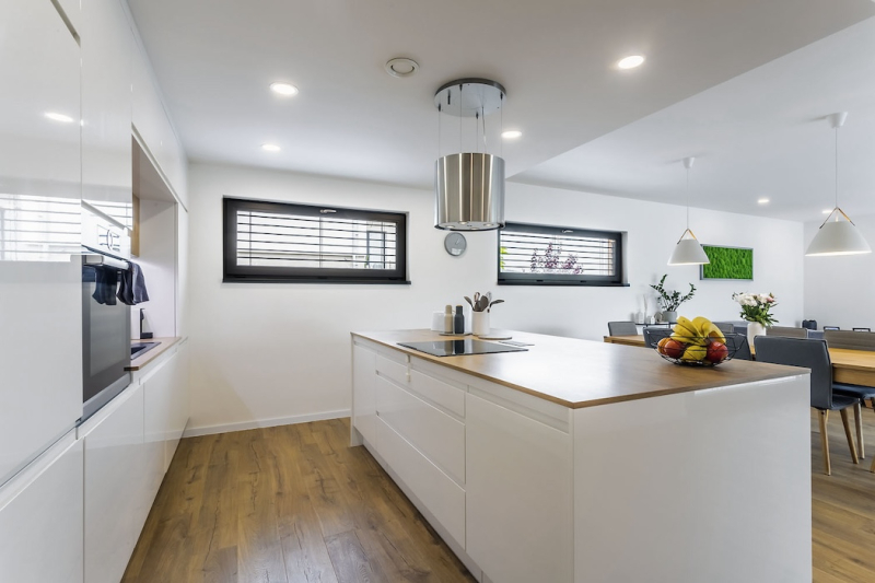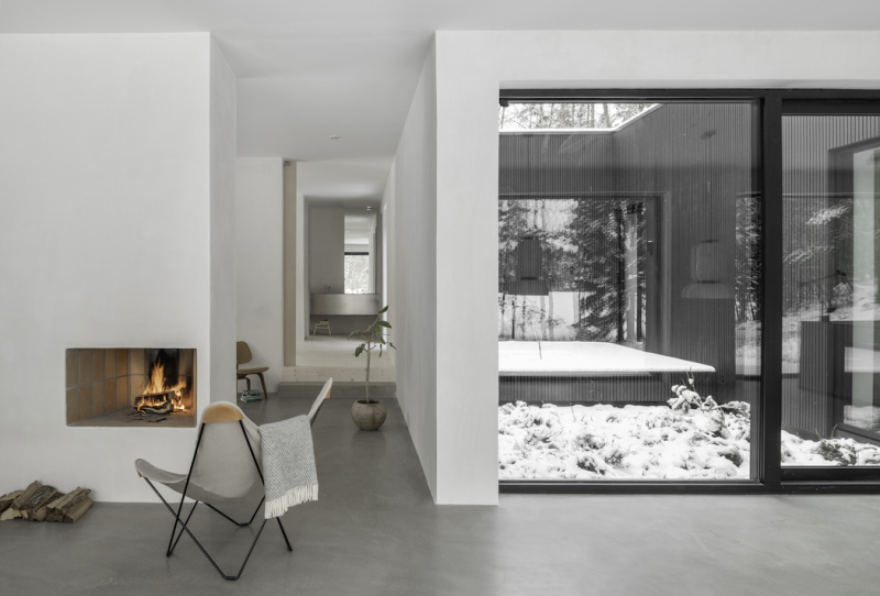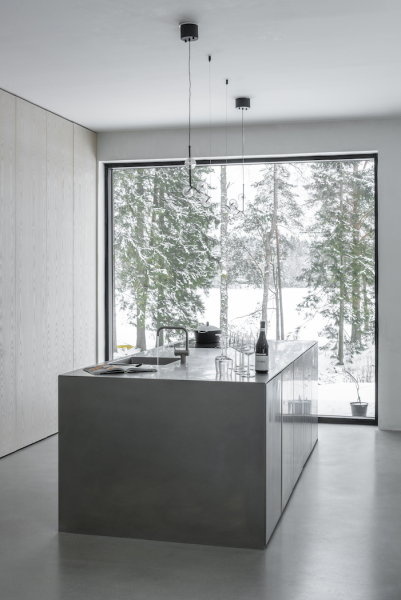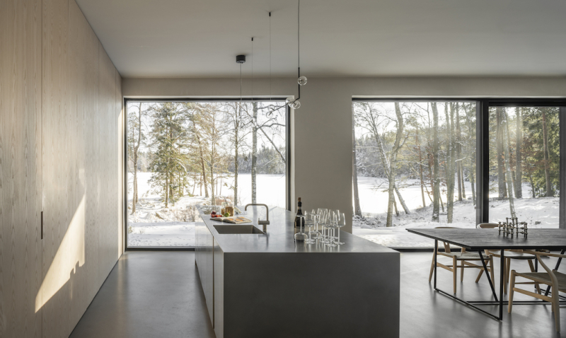 Více než kosmetické změny navrhla ing. arch. Tereza Čudová Ajmová i v interiéru, který viděla otevřenější, prosvětlenější a ve střízlivých neutrálních barvách (bílá, šedá, šedobéžová), s akcenty v podobě antracitových rámů hliníkových oken (Schüco) či zelené kuchyňské linky, která tak barvou ctí přírodní linku celé rekonstrukce.