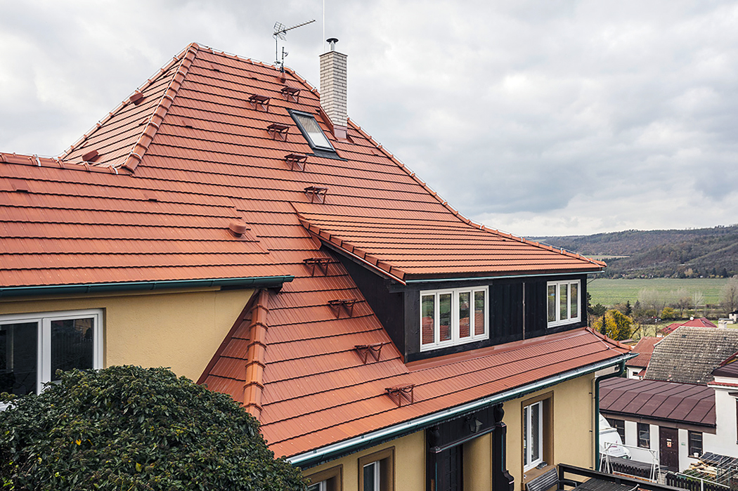 Difuzně otevřená střecha umožňuje neustálé provětrávání střešního pláště a pro historické objekty s členitými detaily a zákoutími je velmi výhodná. Nechte si ji odborně vyprojektovat – nikdy nekombinujte materiály podle toho, jak je výhodná cena nebo co je právě k dostání!