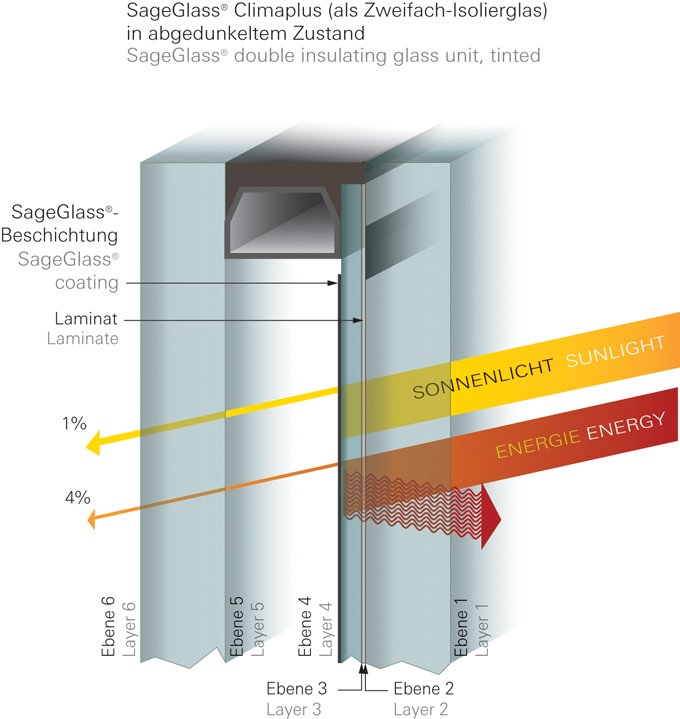 Technologie SageGlass® umožňuje regulovat množství slunečního záření, které se dostane dovnitř objektu, a tím i případné oslnění a přehřívání – nehledě na výšku budovy. Přitom je neustále zachována viditelnost směrem ven i propojení s vnějším světem. V případě větších komerčních projektů navíc tyto skleněné výplně splňují požadavky na udržitelnost a umožňují získat dalších až 8 bodů do certifikace LEED. Dále také šetří spotřebovanou energii i celkové provozní náklady tím, že přispívají ke snižování nákladů na regulaci klimatických podmínek a osvětlení v objektu. Možnost omezit světelnou prostupnost mezi 1 % až 60 % navíc pomáhá předcházet vyblednutí nábytku, textilií, dřevěných podlah, koberců i uměleckých děl.