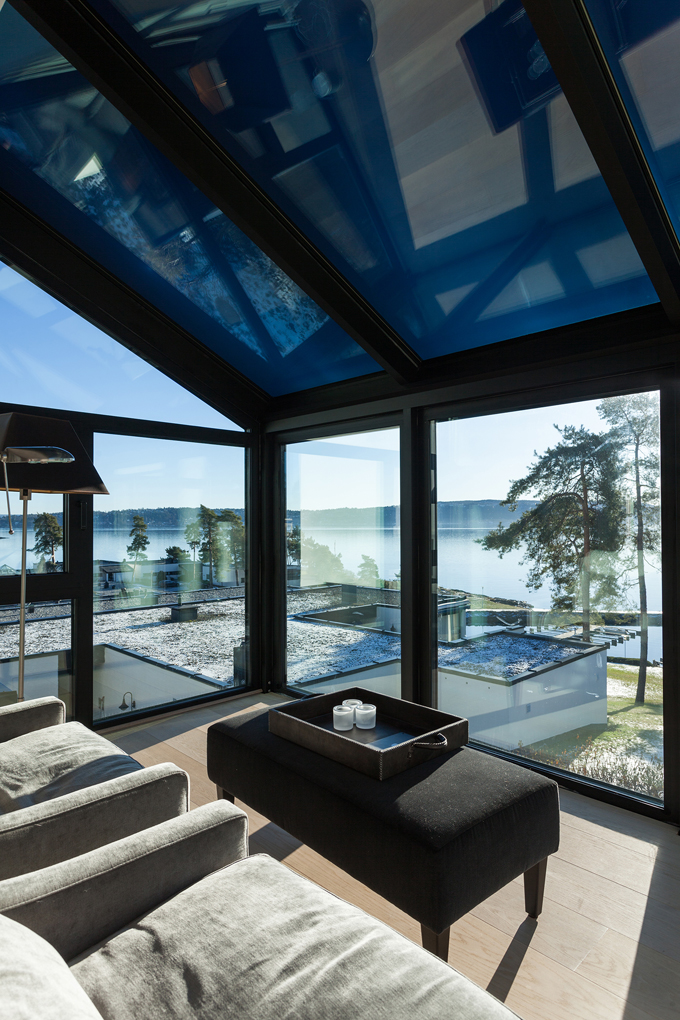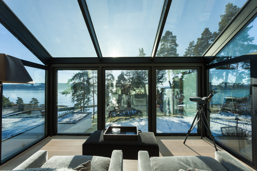 Pokud si obyvatelé domů přejí využívat zimní zahradu celoročně jako rozšíření obytného prostoru, je nutné v ní zajistit teplotu v komfortním rozmezí – to znamená mezi 18 °C a 21 °C v teplejších obdobích a maximálně 27 °C v chladnějších obdobích. Kombinace výborně izolovaného profilového systému s trojitým izolačním sklem (pultová střecha s panely SageGlass®) umožnila spolehlivě dosáhnout kýženého výsledku, a to bez omezení výhledu ven i bez klimatizace. V rámci tepelné izolace se podařilo eliminovat proudění vzduchu blízko skleněných výplní, které způsobuje tzv. „plíživý chlad“. Klienti z rezidenční oblasti Fürstlia si teď mohou ve své nové zimní zahradě také posvítit svíčkami, které ve staré zimní zahradě kvůli proudění vzduchu intenzivně plápolaly a často zhasínaly. Navíc odpadla nutnost tepelného oddělení prostor domu a zimní zahrady – z hlediska teplotních vlastností může být propojena s navazujícím obytným prostorem.