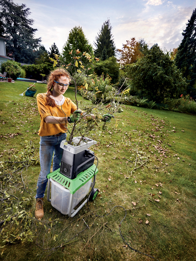 Jestliže rostliny, stromy a keře byly dostatečně zbaveny živelně rostoucích výhonů, přichází na řadu drcení. S vhodným zahradním drtičem, jako je for_q FQ-ELH, to bude hračka. „Nepokoušejte se vkládat materiál do drtiče násilím, mohli byste ho poškodit. Větší odřezky je vhodné zmenšit pomocí silnějších nůžek na větve s velkou pákou. Je-li materiál po prvním nadrcení příliš hrubý, můžete proces ještě jednou opakovat,“ radí David Benda. Do přístroje by se neměl dávat příliš mokrý či silně znečištěný materiál, tím se životnost nožů zkracuje.