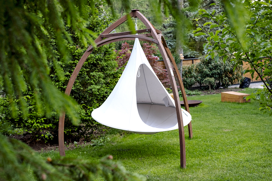 Na první pohled je zde patrná práce profesionálů. Ateliér se postaral o vše potřebné a vytvořil na ploše o celkové rozloze 2 100 m2 (včetně zastavěných ploch) nově ohraničený přírodní prostor v harmonii s okolím i s architekturou rodinného domu. Dominantním prvkem je již zmíněné koupací jezero, které navazuje na obytnou plochu a dělá radost všem členům rodiny, včetně dvou psů. Uspořádání a nábytek řešili majitelé sami, dětské hřiště i trampolínu již měli, ateliér navrhoval pouze speciální houpačku dimenzovanou i pro dospělé. Z dílny profesionálů pocházejí kromě jezírka také kompost, vyvýšené záhony, pařeniště, zeleninová zahrada a sázecí stolek. Návrh ateliéru Fléra obsahoval také provozní cesty, umístění dřevníku a ohniště a oplocení celého pozemku.
