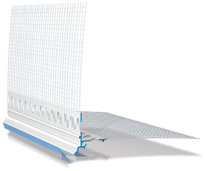 Horizontální zakončení u zateplovacích systémů, například v nadpraží oken a dveří, případně i na spodní hraně vysazeného balkonu, vyžaduje bezpečné řešení odvodu dešťové vody směrem dolů. V těchto případech se používají tzv. zakončovací profily s okapnicí. Výhodou tohoto typu profilu je kromě cíleného vedení vody také přesné ohraničení omítky. U barevných omítek, kde může přiznaná bílá plastová hrana působit rušivě, je výhodné použít novinku, zakončovací profil s transparentní okapničkou a tkaninou. Tento profil představuje optimální řešení kombinace přiznané okapničky s barevnou fasádou. Profil s okapnicí je z každé strany opatřen tkaninou a pro lepší přilnutí omítky na profilu jsou jeho hrany rýhované. Pohledová část lišty je vyrobena z UV stabilního čirého plastu.