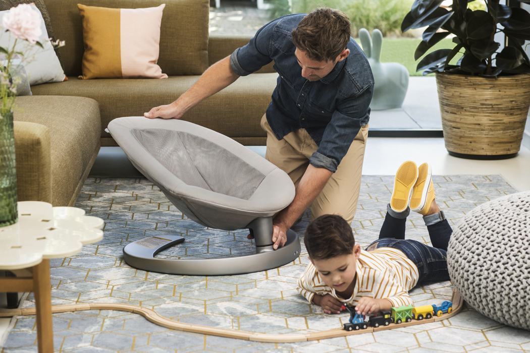 Velmi příjemný a tichý pohyb ze strany na stranu docílíte pouhým lehkým postrčením, po němž se lehátko tiše pohupuje až dvě minuty, bez elektřiny, bez baterií, prostě jako list ve větru. Pohoupat se lze ve všech třech úhlech sklonu lehátka. NUNA LEAF grow má nastavitelné tříbodové pásy s polstrováním i pojistku zabraňující pohybu – aretaci uvítáte třeba při krmení dítěte či hraní.