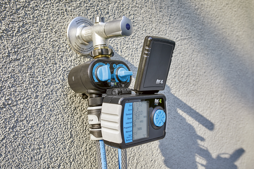 Například zavlažovací počítač for_q dokáže řídit zavlažování až po dobu čtyř hodin v kuse, a to až šestkrát denně. K počítači lze podle potřeby připojit požadovaný počet výstupů. K tomu slouží různé druhy ventilů, například čtyřcestný ventil for_q s regulovatelným systémem umožňuje připojení čtyř hadic najednou. Tyto ventily v závislosti na programu připojují a odpojují jednotlivé zavlažovací zóny, takže můžete zavlažovat různé oblasti s rozdílně silnou intenzitou.