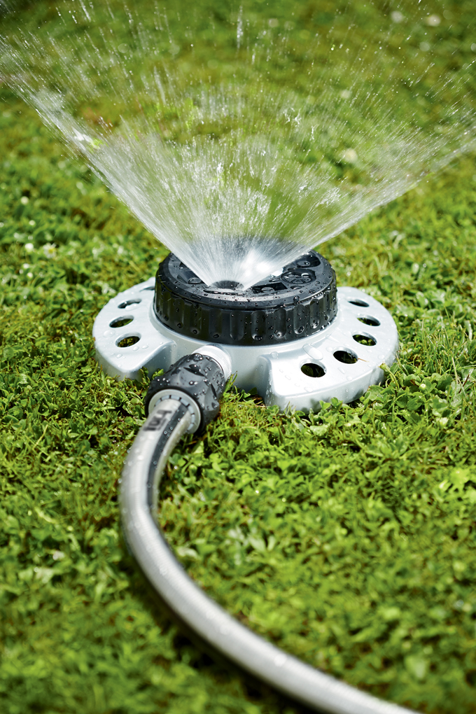 Z tohoto základního připojení se zavlažovací systém rozvádí po zahradě. Klasické postřikovače z malých trysek vydávají paprsky vody a přitom se otáčí nebo vodu impulzně stříkají, hodí se tak pro zavlažování trávníku. Druhou variantou jsou odkapávací trysky, které vydávají vodu po kapkách a hodí se na zalévání záhonů nebo i pro květinové truhlíky. Pro novou výsadbu se hodí mlhové trysky a pro úzké plochy s rostlinami pásové trysky. „Chytrým řešením je měřič vlhkosti půdy for_q, který před každým zavlažováním pomocí počítače for_q změří vlhkost půdy, a pokud je dostatečná, zůstane ventil zavlažovacího počítače zavřený,“ popisuje David Benda z Hornbachu.