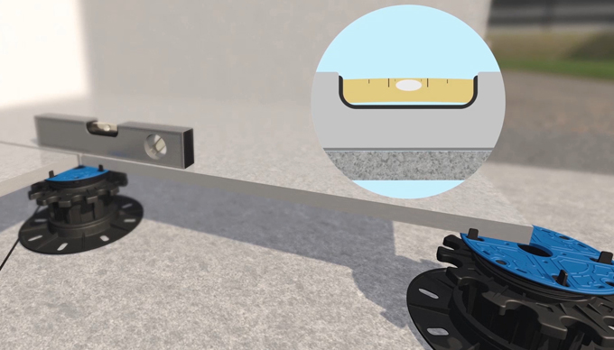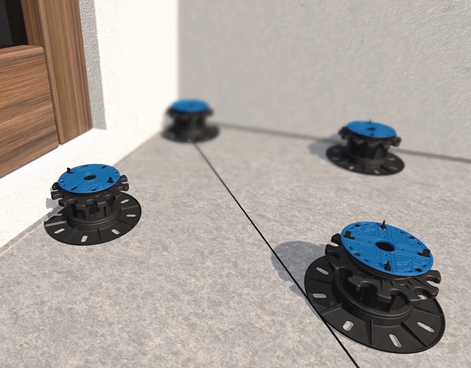 Samonivelační 3D terče jsou dle potřeby nastavitelné, a to jak jejich výška, tak jejich sklon. Snadno se tak přizpůsobí i pevnému, ale nerovnému podkladu. Vybírat lze z šesti variant polypropylenových 3D terčů lišících se výškou, a to od 35-55 cm až do 170-200 cm. Na milimetr přesné nastavení výšky zajišťuje rotační systém šneku podstavce. Větší průměr hlavy terče (120 mm) dodává konstrukci vyšší stabilitu, terč podpírá terasu na větší ploše. Čtyři, již z výroby integrovaná křidélka mezerníků zajišťují rychlou a přesnou pokládku jednotlivých kusů dlažby či profilů pod dřevo. V případě potřeby je jednoduše vylomit. Vylepšená konstrukce terčů dále zajišťuje plynulý odtok vody i při extrémních srážkách.
