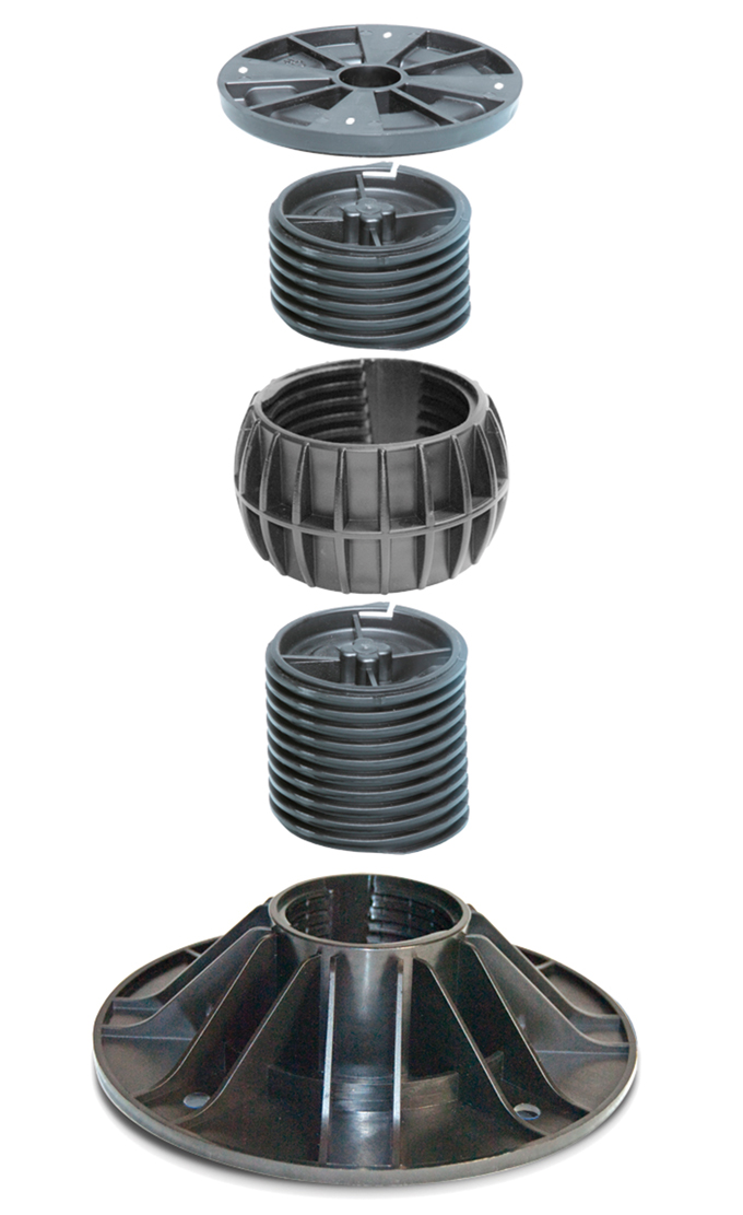 Výškově stavitelné terče ARKIMEDE umožňují snadné nastavení požadované výšky. Základní modul terče ARKIMEDE umožňuje nastavení výšky 35–60 mm, prodloužit jej lze až do maximální výšky 500 mm pomocí dalších dvou dílů ze systému (25 a 50 mm), které lze dle potřeb kombinovat. I při této výšce zůstávají zachovány všechny parametry stability a únosnosti. Široká hlava základního modulu terče dodává konstrukci vysokou stabilitu, integrované mezerníky, vymezují při použití samonosných dlaždic přesnou spáru, širokou 4 mm. Při vylomení mezerníku lze hlavu terče doplnit o tzv. křidélka, která mohou sloužit i pro fixaci nosných profilů pro dřevo.