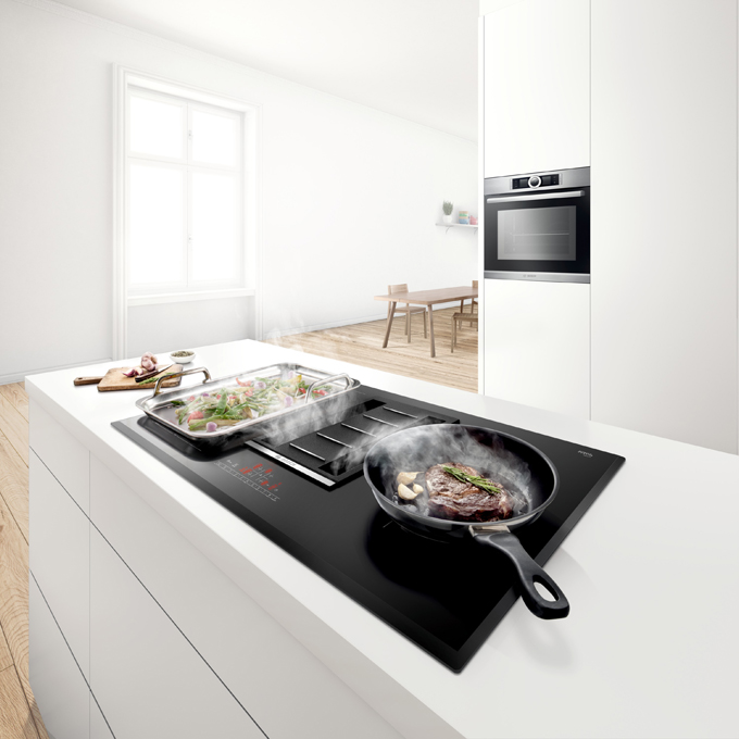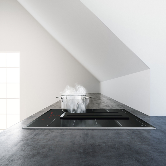 80cm indukční varná deska s integrovaným odsáváním PVS851F21E kombinuje ty nejlepší technologie dvou špičkových spotřebičů do jednoho modelu. Vaření na indukci je rychlé, jednoduché a bezpečné. Novinka navíc nabízí řadu inovativních funkcí, které vaření maximálně usnadní. Pokud potřebujete vařit ve větších pánvích nebo pekáčích, jedním stisknutím tlačítka CombiZone zkombinujete dvě varné zóny do jedné velké plochy. Díky inovativní funkci MoveMode můžete jednoduchým posunem hrnce změnit stupeň výkonu. Když aktivujete funkci MoveMode, varná plocha CombiZone se rozdělí do dvou přesně nadefinovaných varných zón s rozdílnými stupni výkonu. Vpředu tak například přivedete při nejvyšším stupni výkonu pokrm k varu a posunem dozadu budete teplotu udržovat pomocí nejnižšího výkonového stupně. S dokonalým smažením při správné teplotě pomůže senzor PerfectFry. Různé druhy olejů se totiž začínají přepalovat při různě vysokých teplotách a vhodnou úroveň je často obtížné udržet. Senzor na smažení PerfectFry pohlídá správnou teplotu za vás. Stačí nastavit požadovaný stupeň teploty podle toho, jestli připravujete například vajíčka, palačinky, řízky nebo steaky, a senzor zajistí, že se všechno perfektně a rovnoměrně usmaží, bezpečně a bez přepálení.