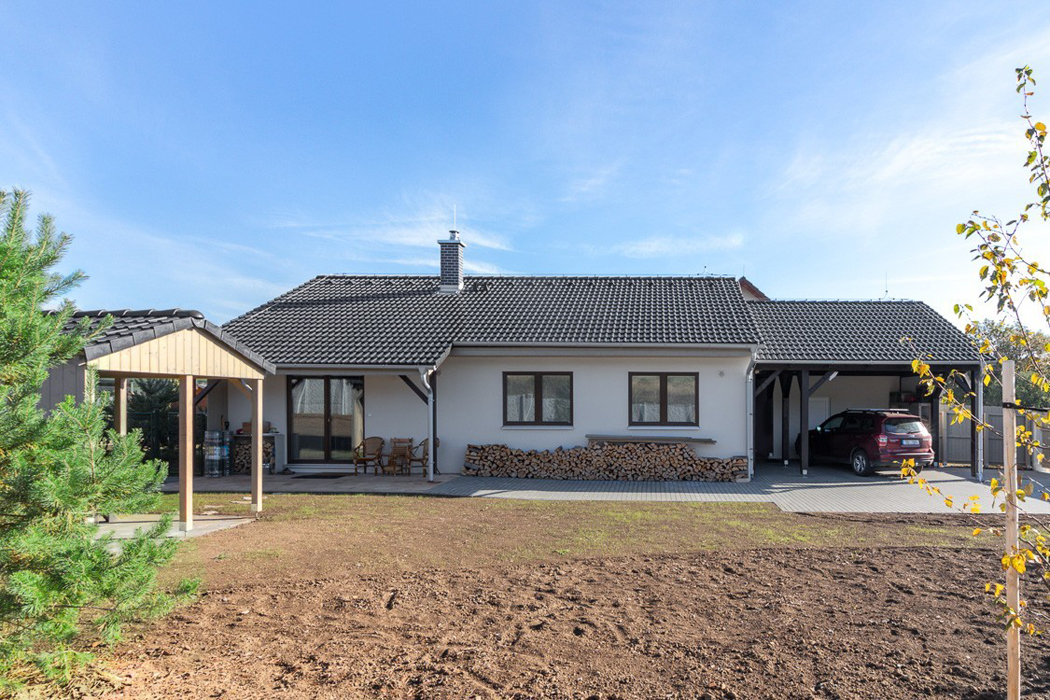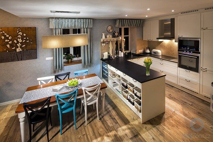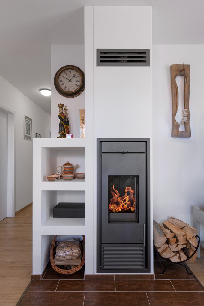 I když víte, co přesně potřebujete, může vám návštěva již hotových domů řadu věcí ujasnit. Tváří v tvář se seznámíte s nejnovějšími technologiemi a možnostmi konkrétní stavební firmy. Sám majitel přiznává, že se tímto způsobem rozhodl, jak bude vytápět. V navštíveném objektu byl nainstalován komínový systém Kingfire Parat s integrovanou krbovou vložkou, kde zrovna probíhala zátopová zkouška. Při pohledu na plápolající krb měl majitel dle svých slov o vytápění jasno a rozhodl se do systému Kingfire investovat. Tento unikátní systém vyrábí společnost Schiedel, která je leadrem na našem i evropském trhu ve vývoji a výrobě komínových systémů. Výhodou systému Kingfire je velmi rychlá a přesná instalace. Jedná se o monolit, který se vyrábí se na míru každé stavbě a na místo je dovezen vcelku. Jediným předpokladem instalace je přítomnost jeřábu, kterým se monolit zasadí na předem připravený podklad. Krbová kamna jsou plně nezávislá na vzduchu z místnosti, neboť vzduch potřebný ke spalování se přivádí přímo komínovou šachtou. Je tak vhodný i do nízkoenergetických domů s řízeným větráním a rekuperací vzduchu. To je i případ domu u Brna. Vytápění je řešeno kromě krbových kamen i elektrickými přímotopy v jednotlivých místnostech. Jak přiznává majitel domu, on preferuje v chladných dnech zatopení v krbu, jeho žena upřednostňuje přece jen snadnější spuštění elektrických radiátorů.