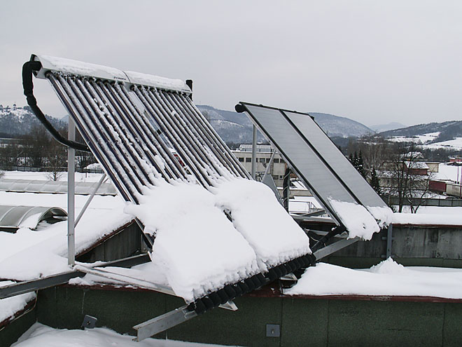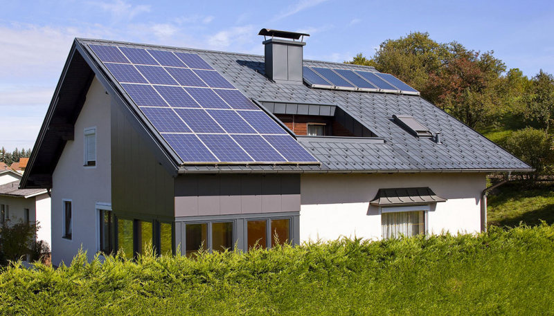 Vůbec největší zdroj energie představuje slunce. Potenciál jeho paprsků lze využít k topení i chlazení, k větrání, svícení či pohonu všeho, co saje hnací sílu ze zásuvky. Velmi efektivním způsobem je fotovoltaika, fungující jako hybridní systém. Dům má klasickou přípojku na veřejnou síť, ale o ohřev vody se starají zisky solárních panelů v bojlerech na stejnosměrný proud. U solárních elektráren do výkonu 10 kilowattů navíc není třeba žádná licence ani registrace (pro rodinný dům bohatě stačí 3–5 kW, což představuje na 1 kW asi 7 m2 plochy střechy). Je-li paprsků málo, zapnou se „nakrmené“ domovní baterie.