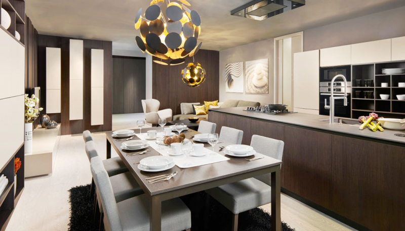 Skvělou předlohou pro výběr kuchyně a nábytku jsou u HANÁKA i virtuální prohlídky vzorových bytů. Díky nim vidí klient od počátku, jak může vypadat celý jeho byt zařízený v jedné značce. HANÁK letos překvapil i krásnými sety jídelních stolů a židlí. Stačí prolistovat online katalogem, kde jsou tyto novinky k vidění.