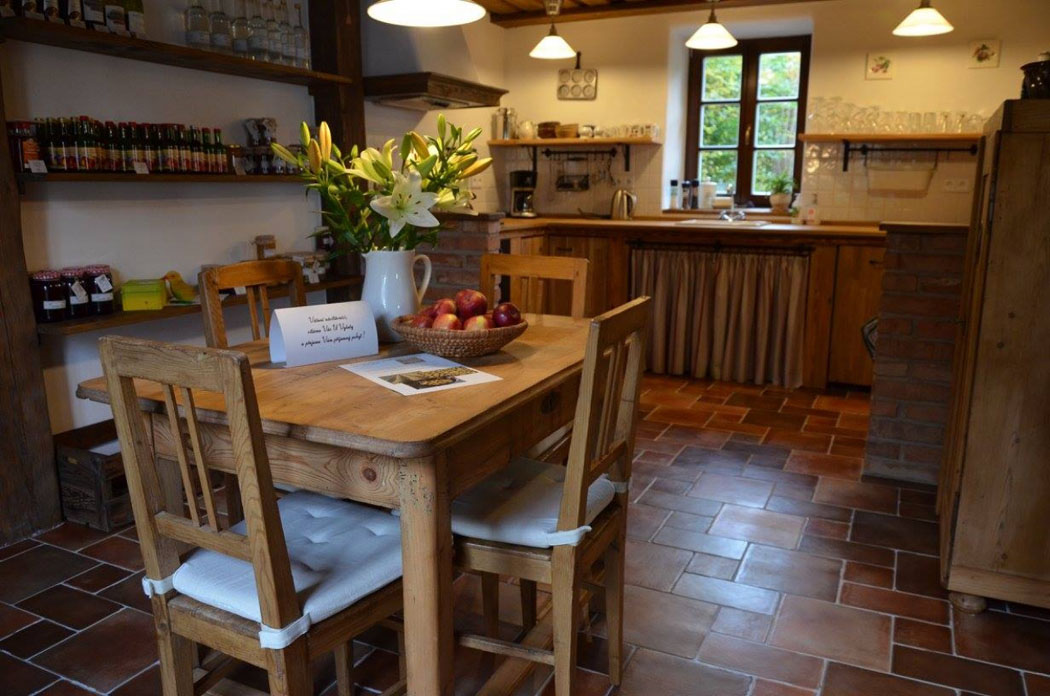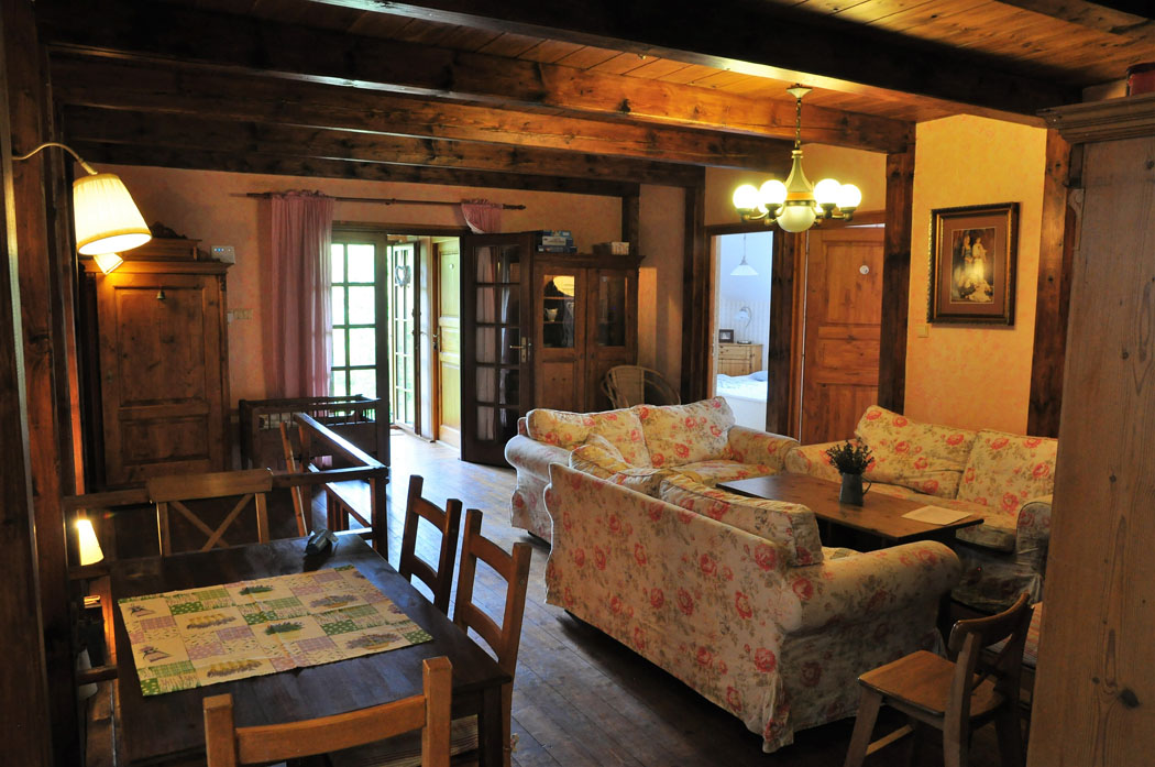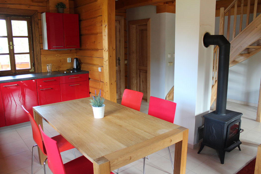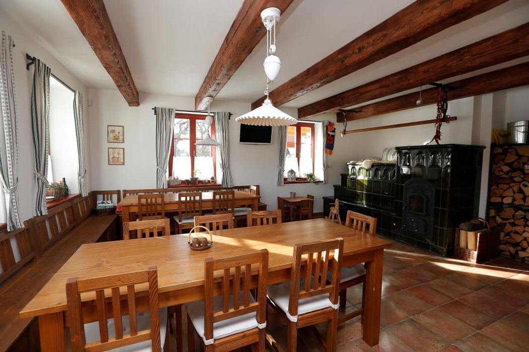 K dispozici: prostorná společenská místnost s velkým jídelním stolem, v okolí minizoo, singltrek, běžecké a lyžařské tratě