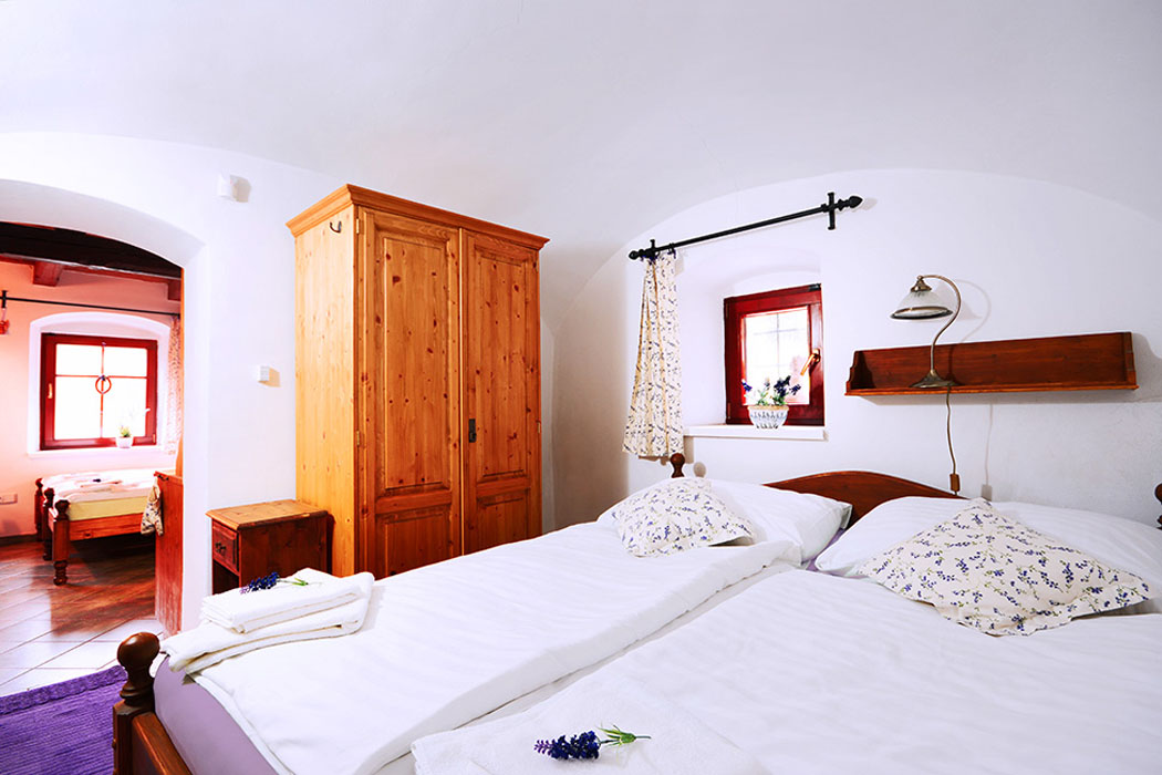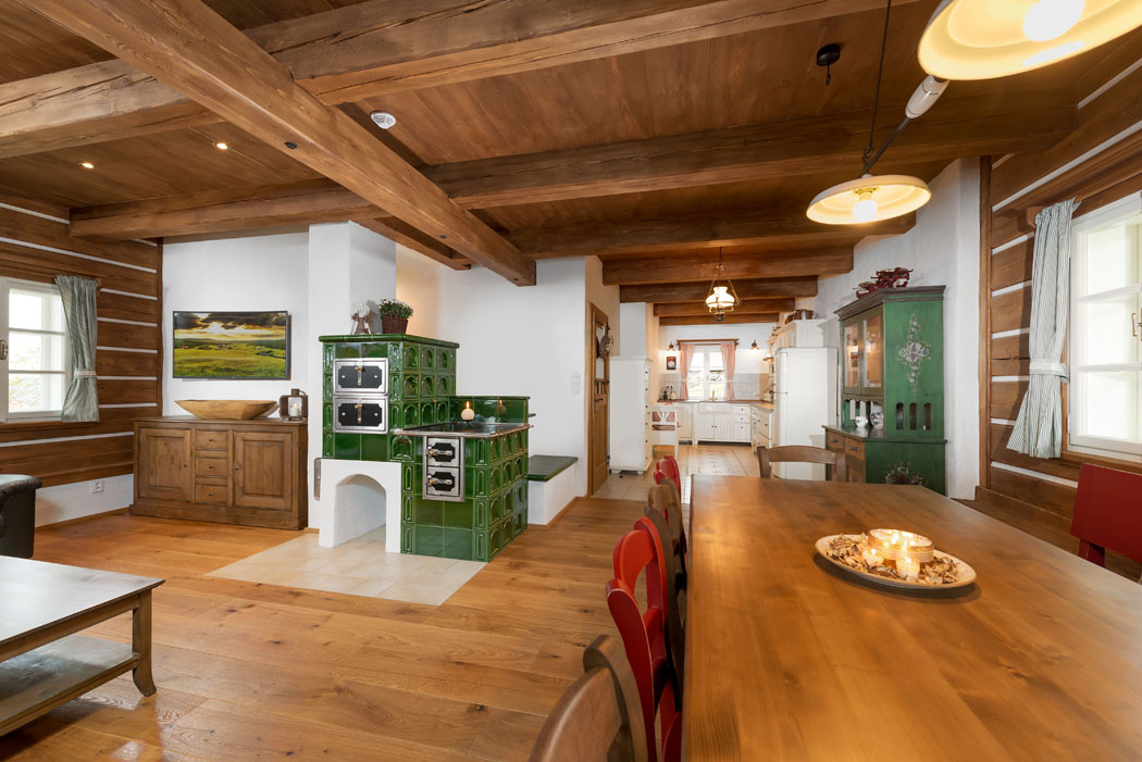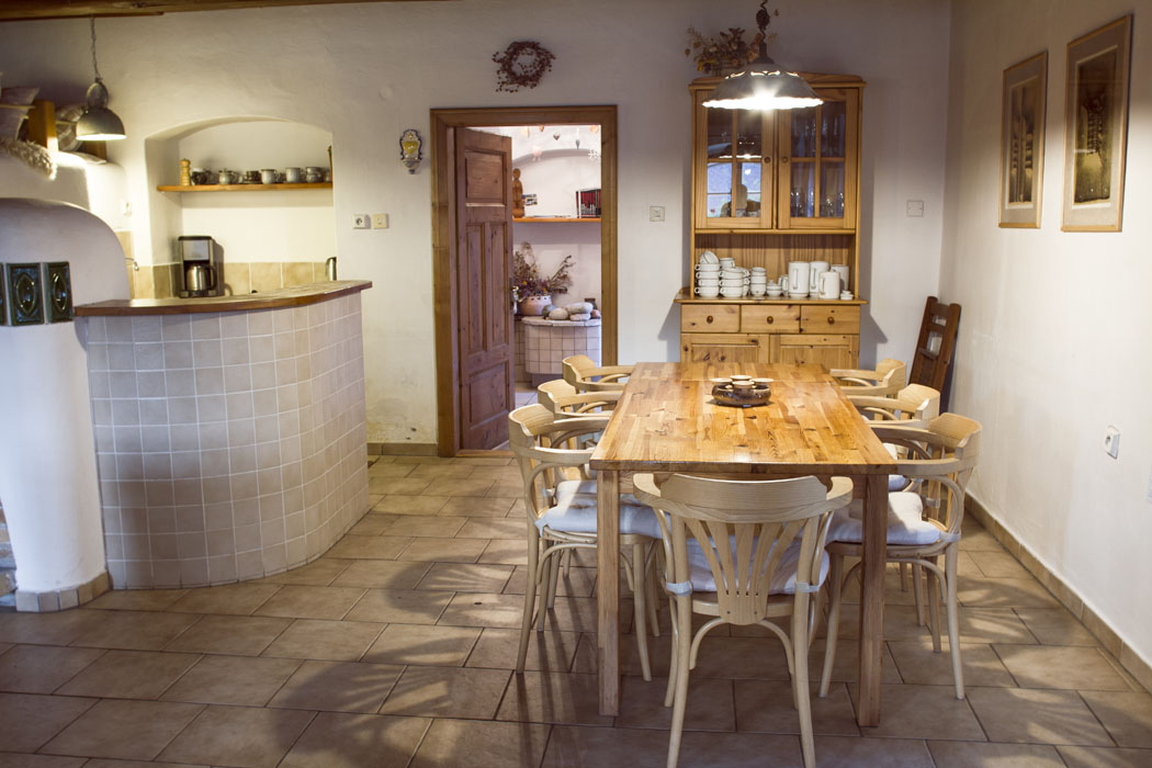 K dispozici: velká světnice s nádhernou kachlovou pecí a dobovými artefakty, finská sauna a fitodar (bylinná parní lázeň)