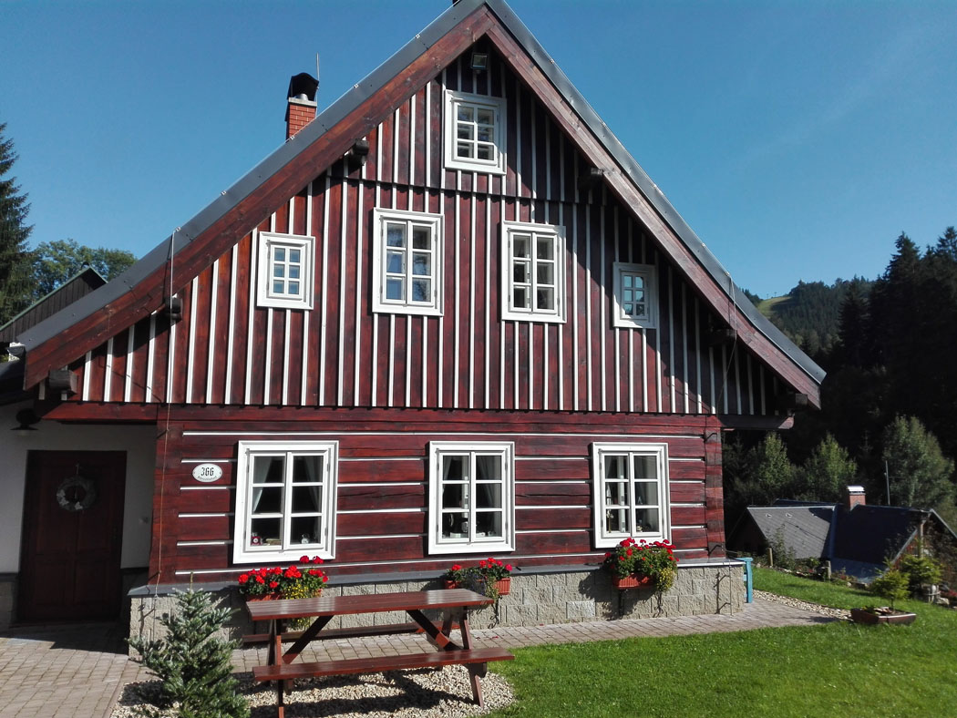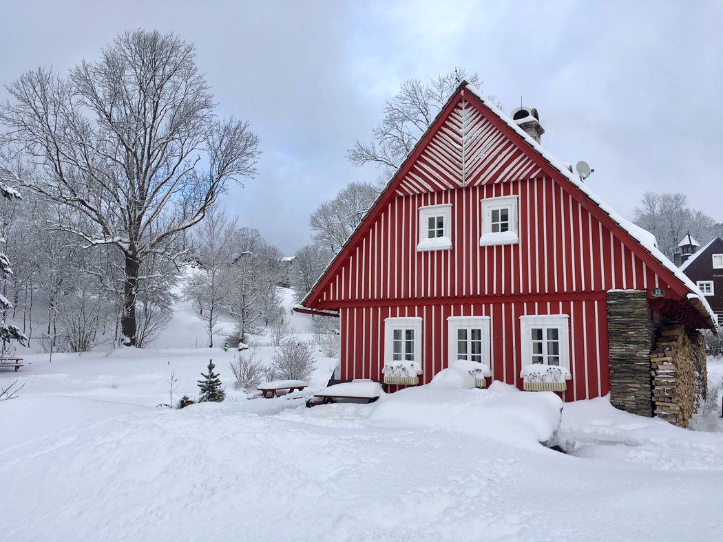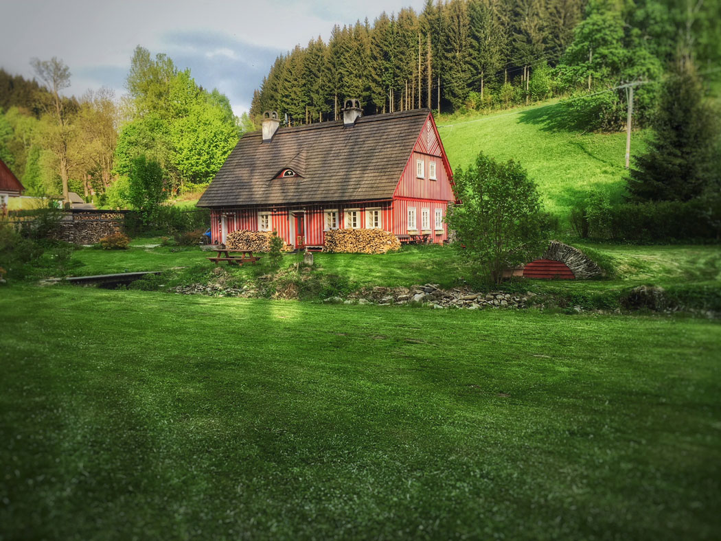 Malebná červená chaloupka s bílými okny, kolem ní velká zahrada s potůčkem a jezírkem, hřiště pro děti včetně skluzavky a trampolíny a pro dospělé posezení u ohniště. Všude kolem zeleň, rozkvetlé louky a ničím nerušený klid. To vše přijeďte stejně jako my objevit do Chalupy na horách, ukryté v srdci Krkonoš.