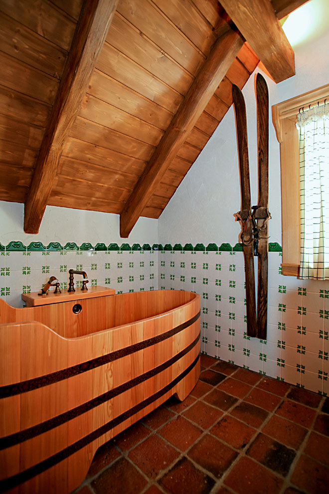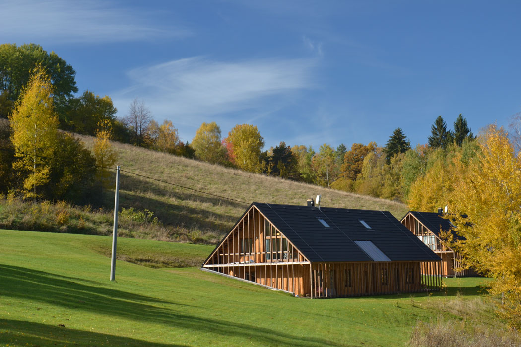Na počátku všeho bylo golfové hřiště. A protože hráči občas potřebují někde přespat, vyrostla zde roubenka, která nabízí veškerý moderní komfort, přesto z ní sálá pohostinnost jako ze starých obrázků. Dům má v přízemí společnou obytnou místnost s kuchyní, jídelnou a sednicí. Nábytek je starožitný, nebo vyrobený tradičními metodami. Rozdíl nepoznáte.