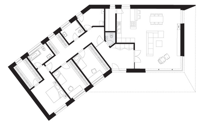 Pokud toužíte vyzkoušet svou „testovací jízdu“ v moderní dřevostavbě, Domesi Concept House vás mile překvapí! Nečekejte obyčejný víkendový dům – s veškerým komfortem a vybavením se tu budete cítit jako v bavlnce. Pohodlně se tu ubytuje čtyřčlenná rodina.