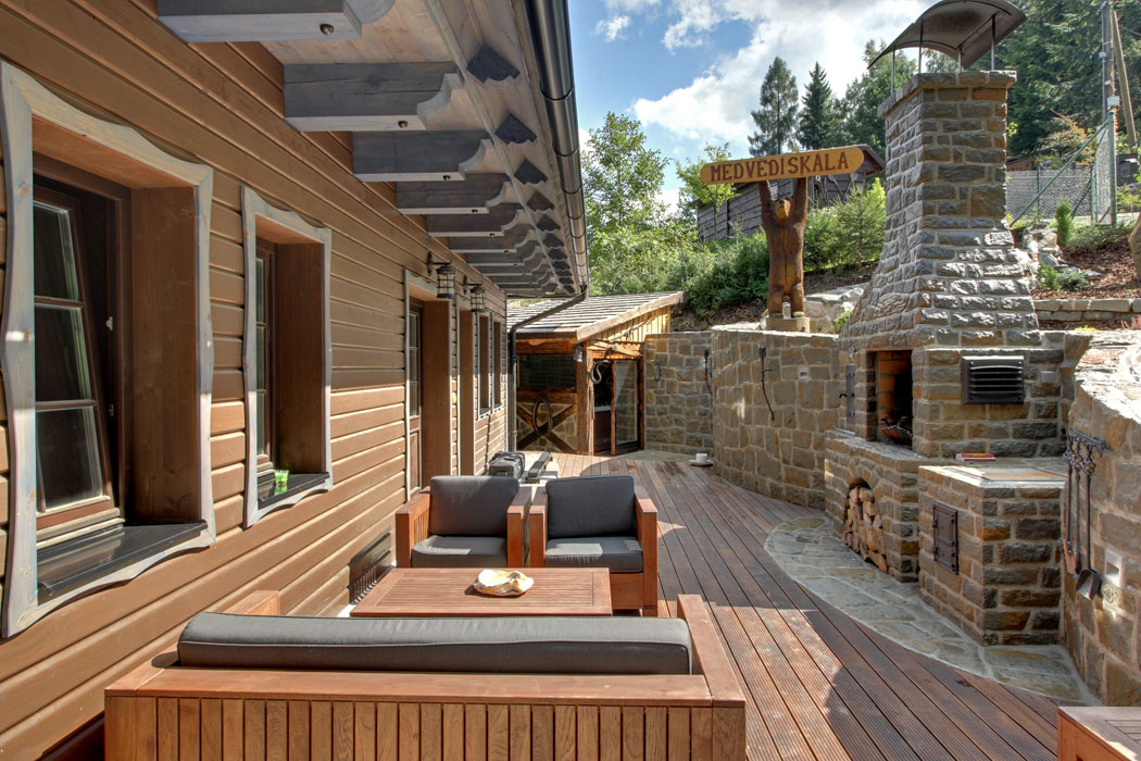 Excelentní poloha chaty s výhledem do přírody a s perfektní dostupností na výletní místa, jako jsou Pustevny, Hukvaldy, Lysá hora či Satinské vodopády, nadstandardní vybavení chaty a kuchyně – to vše dělá z apartmánů Medvědí skála perfektní místo pro odpočinek. Ochotní a milí majitelé udělají vše pro to, aby se zde hosté cítili jako v ráji, k tomu jim pomáhá i nádherná příroda kolem. Nadchne vás kamenný obklad, který na vhodných místech skvěle doplňuje dřevo.