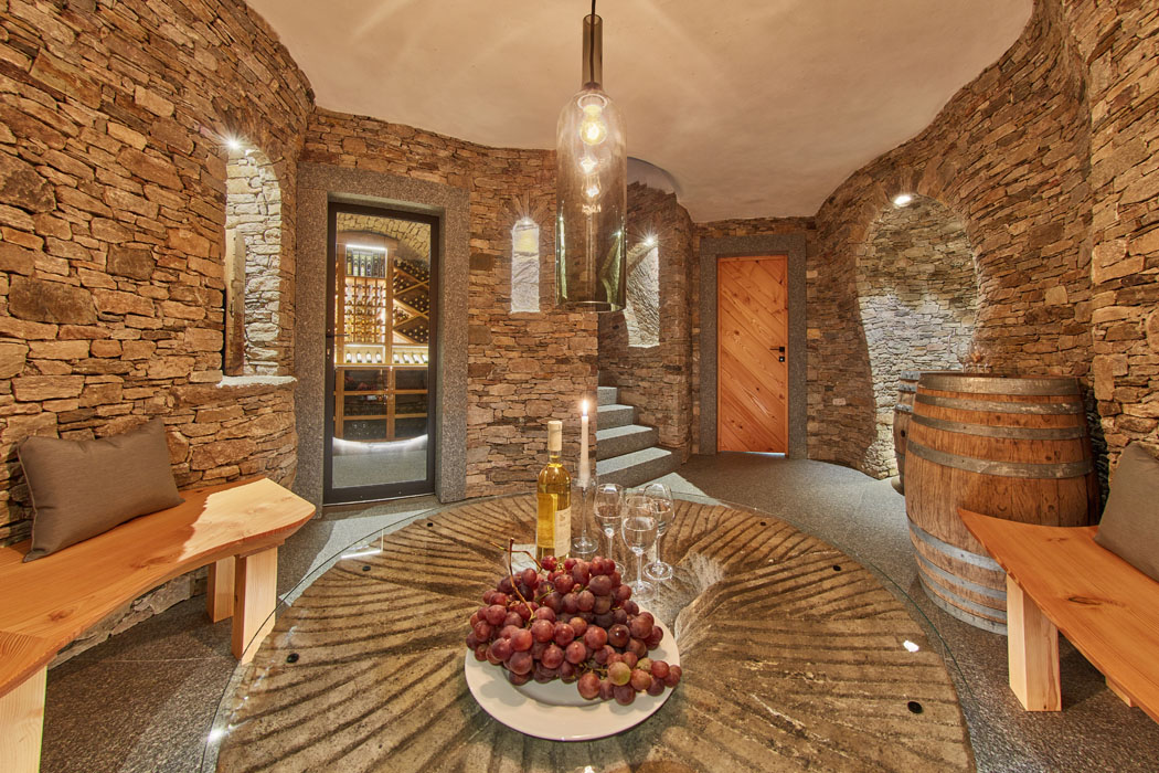 K dispozici: wellness, vinný sklípek, terasa s grilem, pravěké dětské hřiště, přírodní koupelna