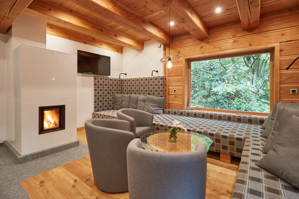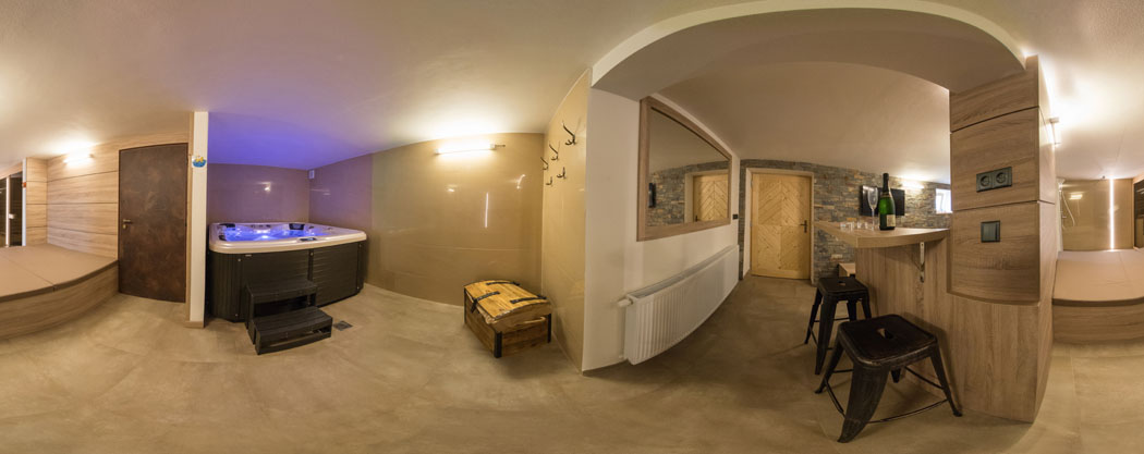 K dispozici: sauna, hydromasážní vana s chromoterapií, relaxační místnost s výhledem do přírody, masážní a společenská místnost