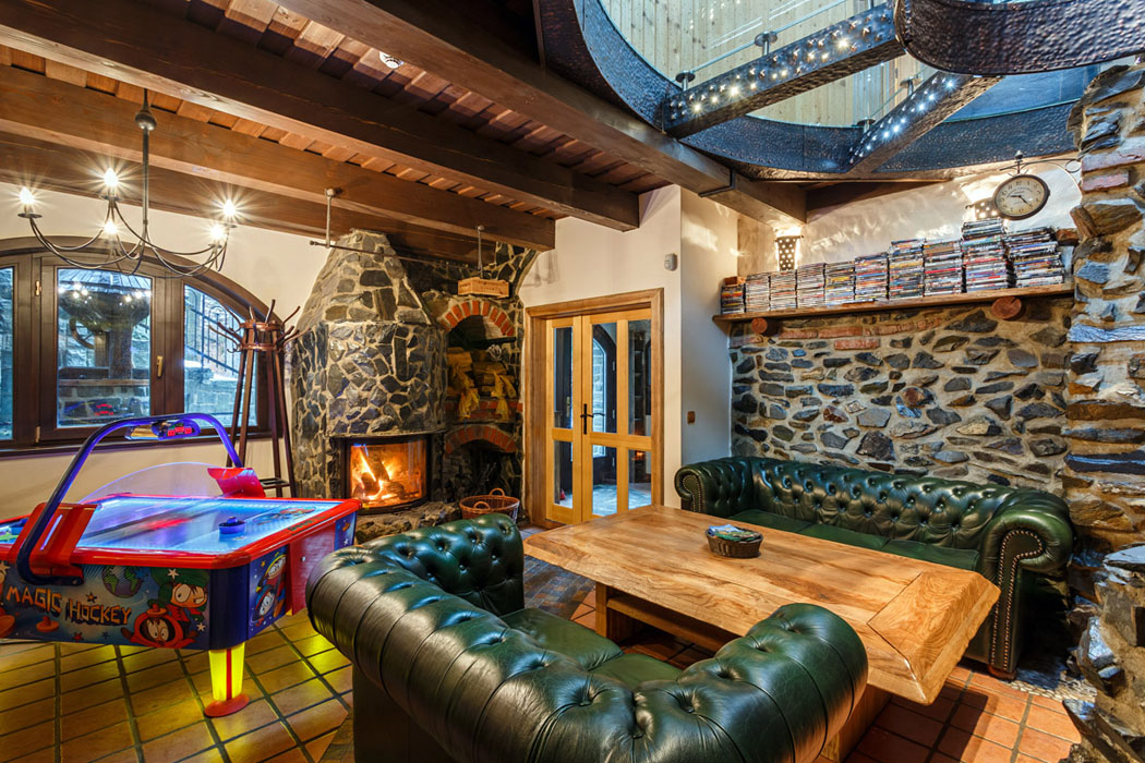 K dispozici: wellness, sauna, jacuzzi, domácí kino, vinný sklep, grilování, masáže, air hokej, golf v okolí