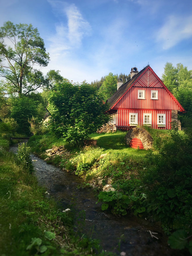Chalupa jako vystřižená z lidové pohádky stojí na břehu řeky Moravy v Jeseníkách už téměř dvě stě let. V roce 2010 prošla náročnou rekonstrukcí. Každý kus nábytku, světla, obklady, závěsy, veškeré vybavení a doplňky, každý detail včetně barev jsou voleny tak, aby byly ve vzájemné harmonii jako celek, který nabízí jedinečný estetický zážitek.